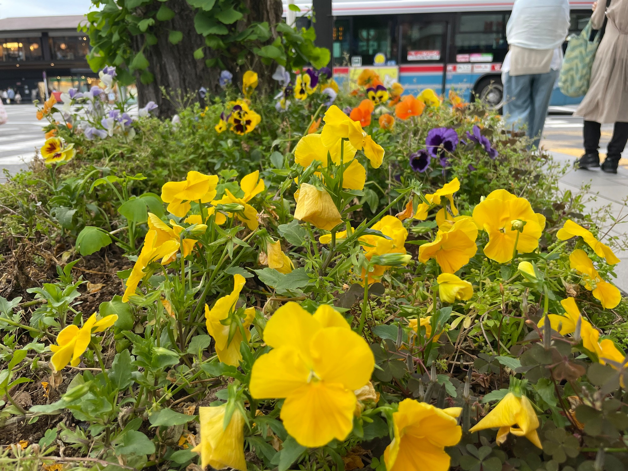 #鎌倉駅前の街路樹の元に咲く
